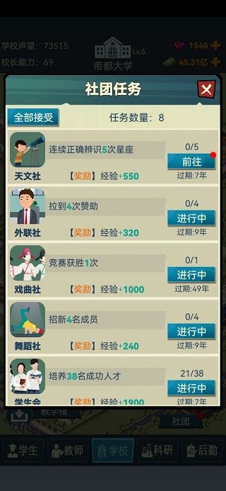 7、学校活动十分关键,第一年就开启,选择四项活动,积累声望加快升级。